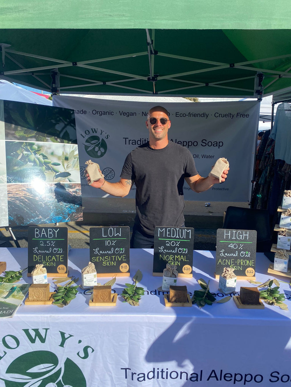 Back to the airport Lowy went to restock their soap supply. Upon returning to Los Angeles, they took the goods to a local farmers’ market. Within just a few weekends, they completely sold out. The sales were a relief (those flights are expensive!), but more importantly, the feedback from customers was a shock. People of all ages and ethnicities kept repeating a similar claim: our soap helped relieve their skin conditions, particularly eczema, psoriasis, rosacea and acne.