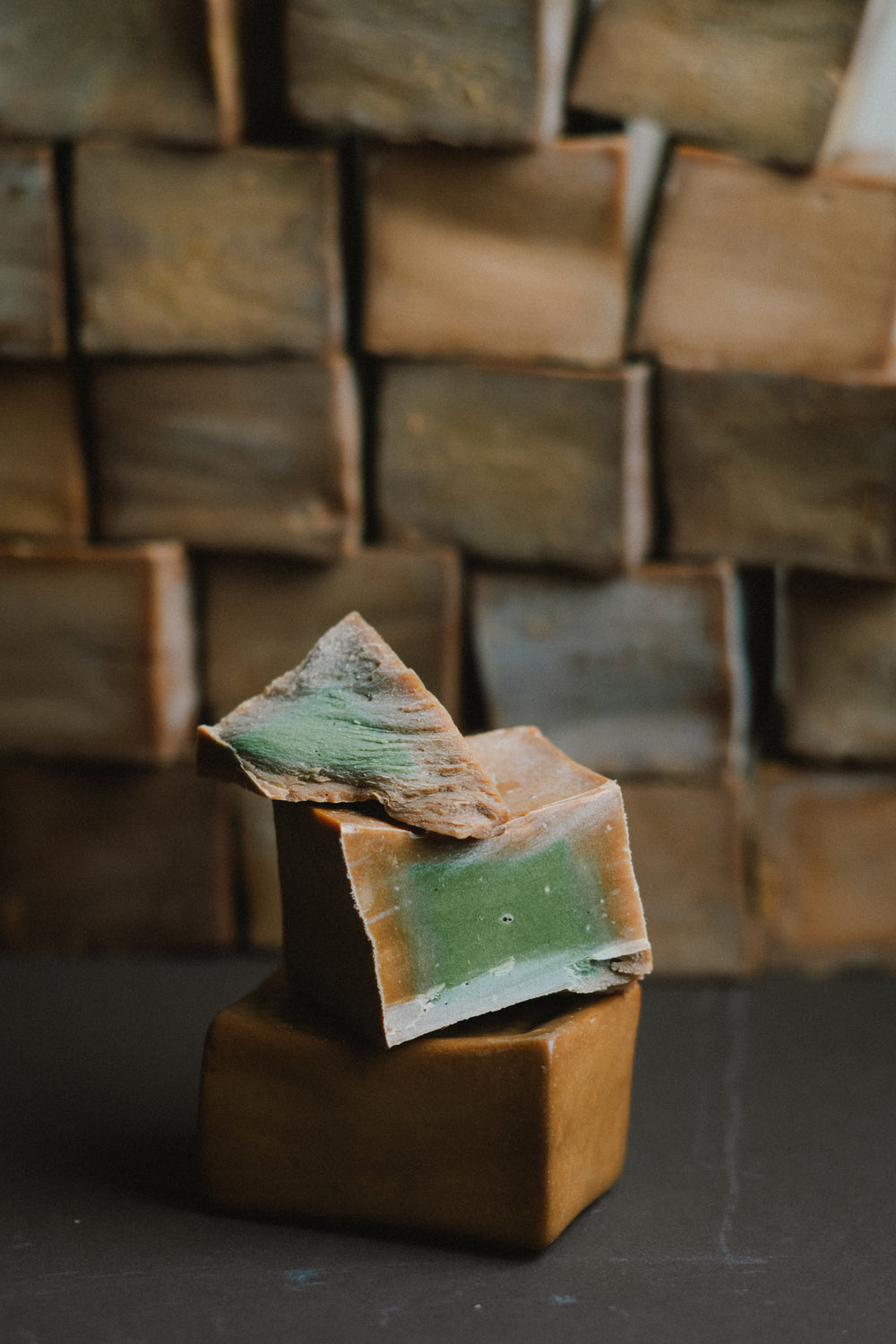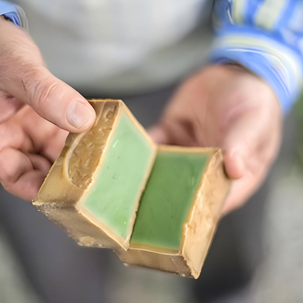 Our Laurel Oil Soap undergoes an extensive dry-aging process, lasting between 6 to 9 months, during which time the soap bars slowly cure and harden. This aging process allows the soap to develop a golden hue on the outside, while the interior retains a rich olive green color, a sign of its natural ingredients. Over this period, the soap’s surface oxidizes, which helps to lock in its nutrients and enhance its longevity. The dry-aging not only improves the soap's texture but also makes it more durable, resulting in bars that last far longer than mass-produced soaps. This slow, patient curing method is an integral part of the soap’s quality, producing a bar that is firmer, longer-lasting, and even more effective at cleansing.